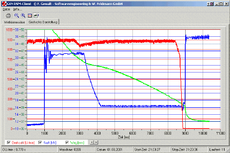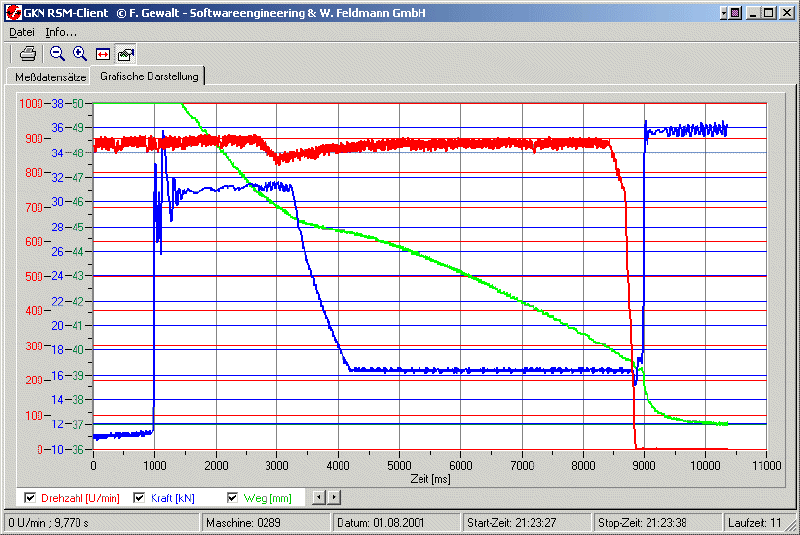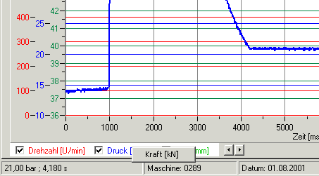 Durch Klicken mit der rechten Maustaste auf die Legenden-Bezeichnung Druck kann die grafische Darstellung auf Kraft umgeschaltet werden: