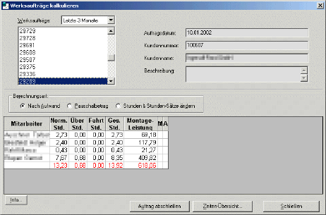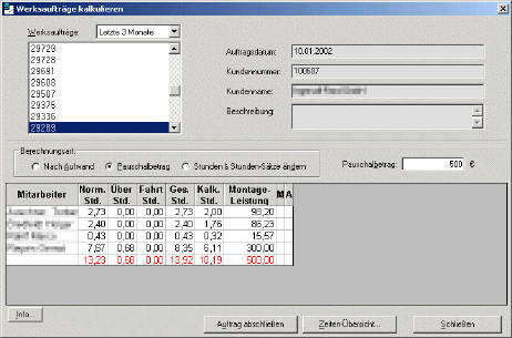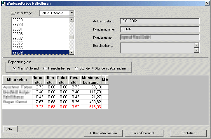 2. Pauschal, d.h. der Kunde bekommt einen Pauschalbetrag in Rechnung gestellt und das System berechnet anhand der Stundensätze der Mitarbeiter die kalkulatorischen Stunden neu.